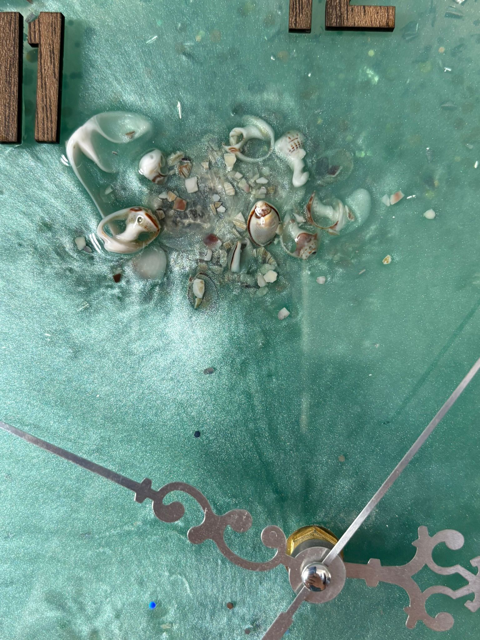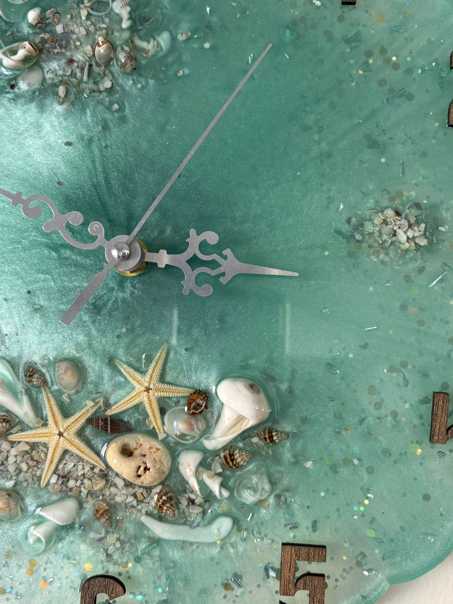 Denizin Ruhu Duvar Saati - Epoksi Reçine Gerçek Deniz Kabuklu Tasarım - 30 cm - 2.Model