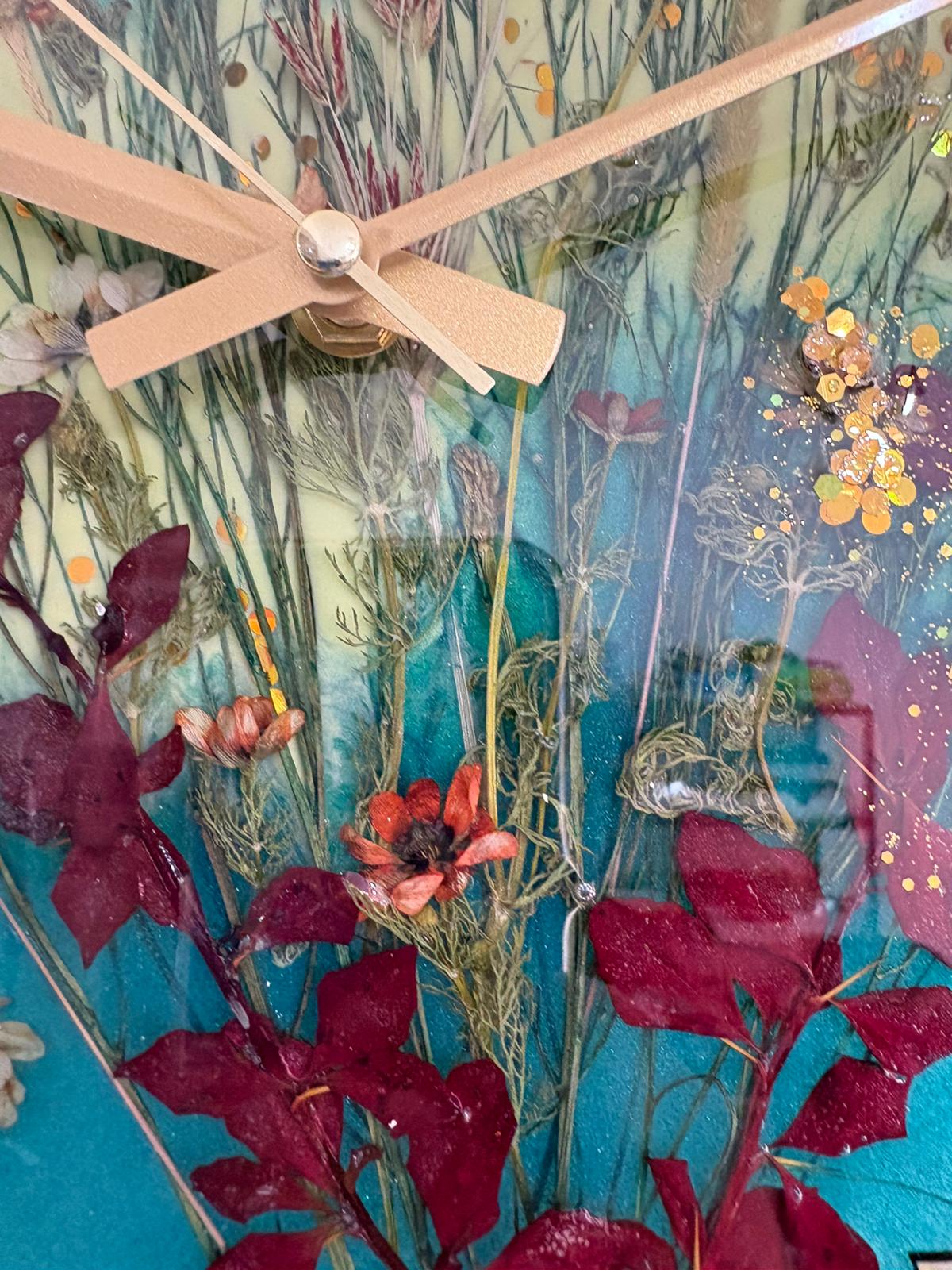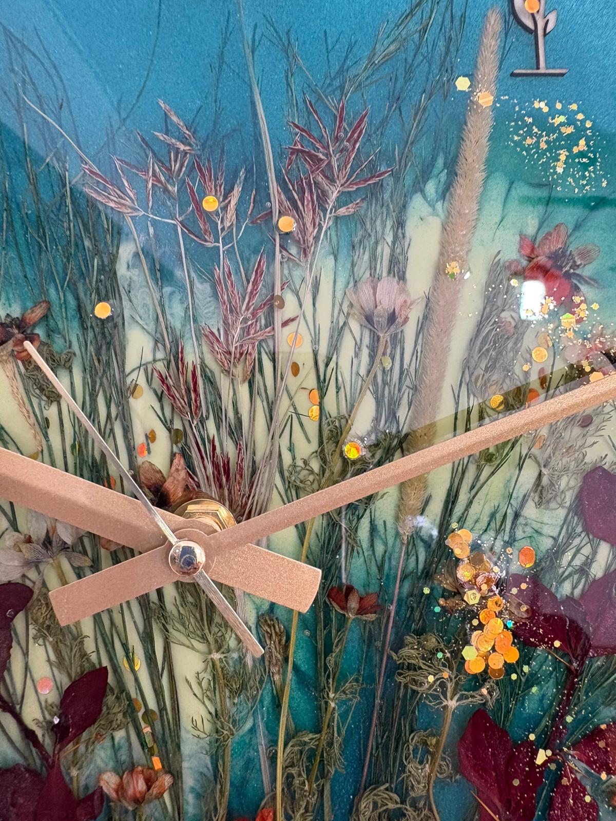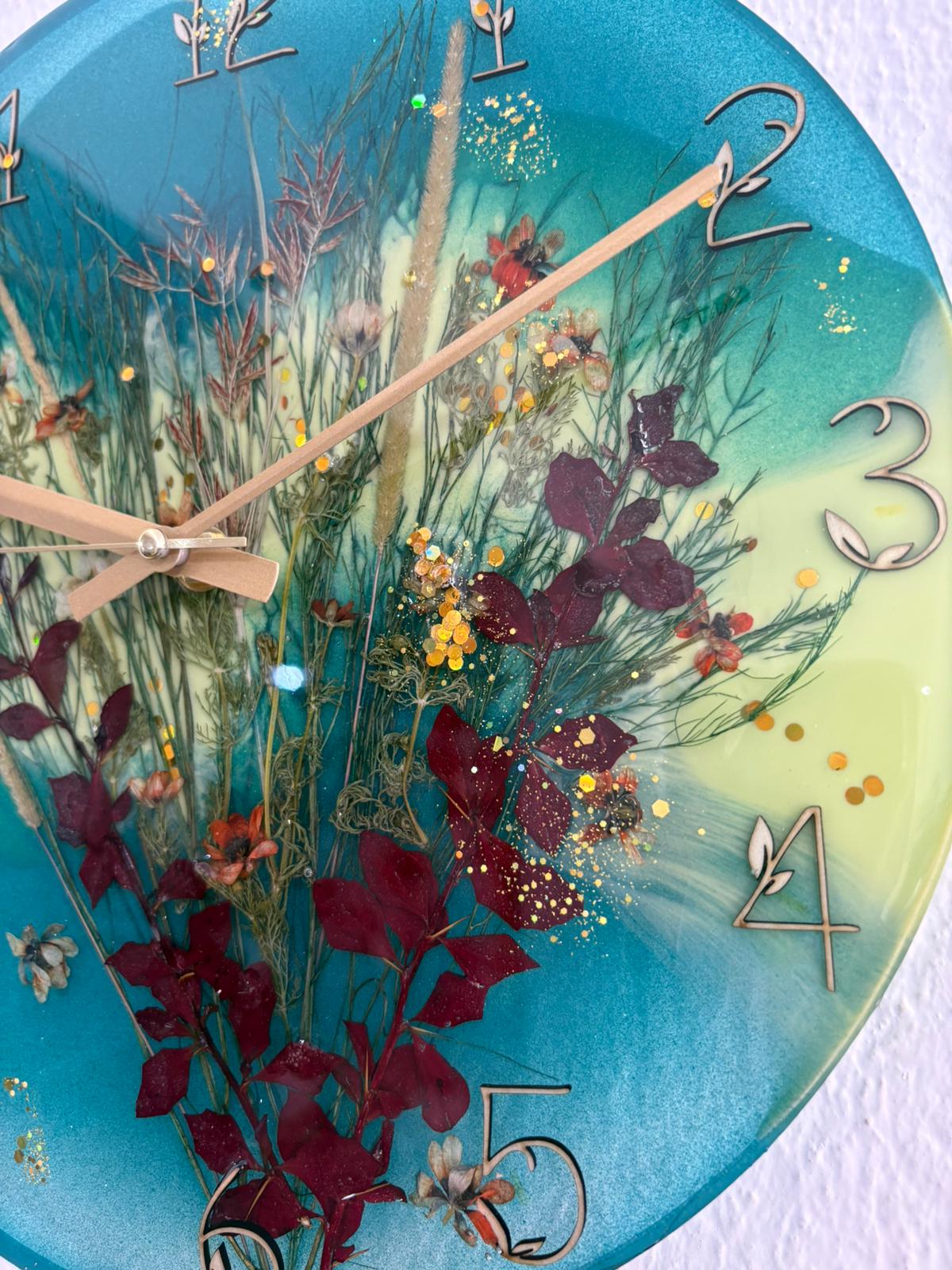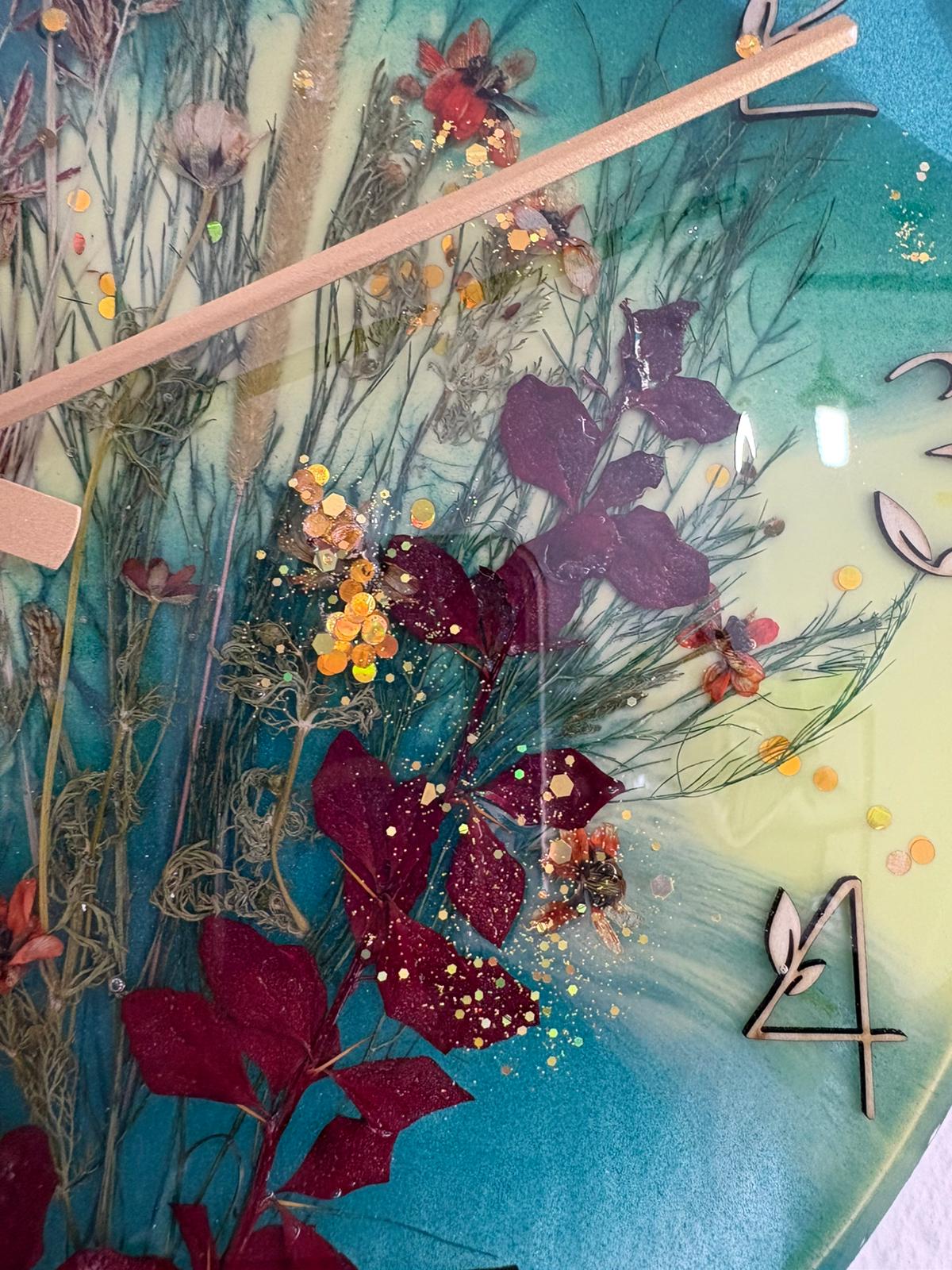 PELİNCE - Gelincik ve Doğal Çiçek Buketi Epoksi Duvar Saati (Özel Tasarım - Tek Üretim) - 30 cm