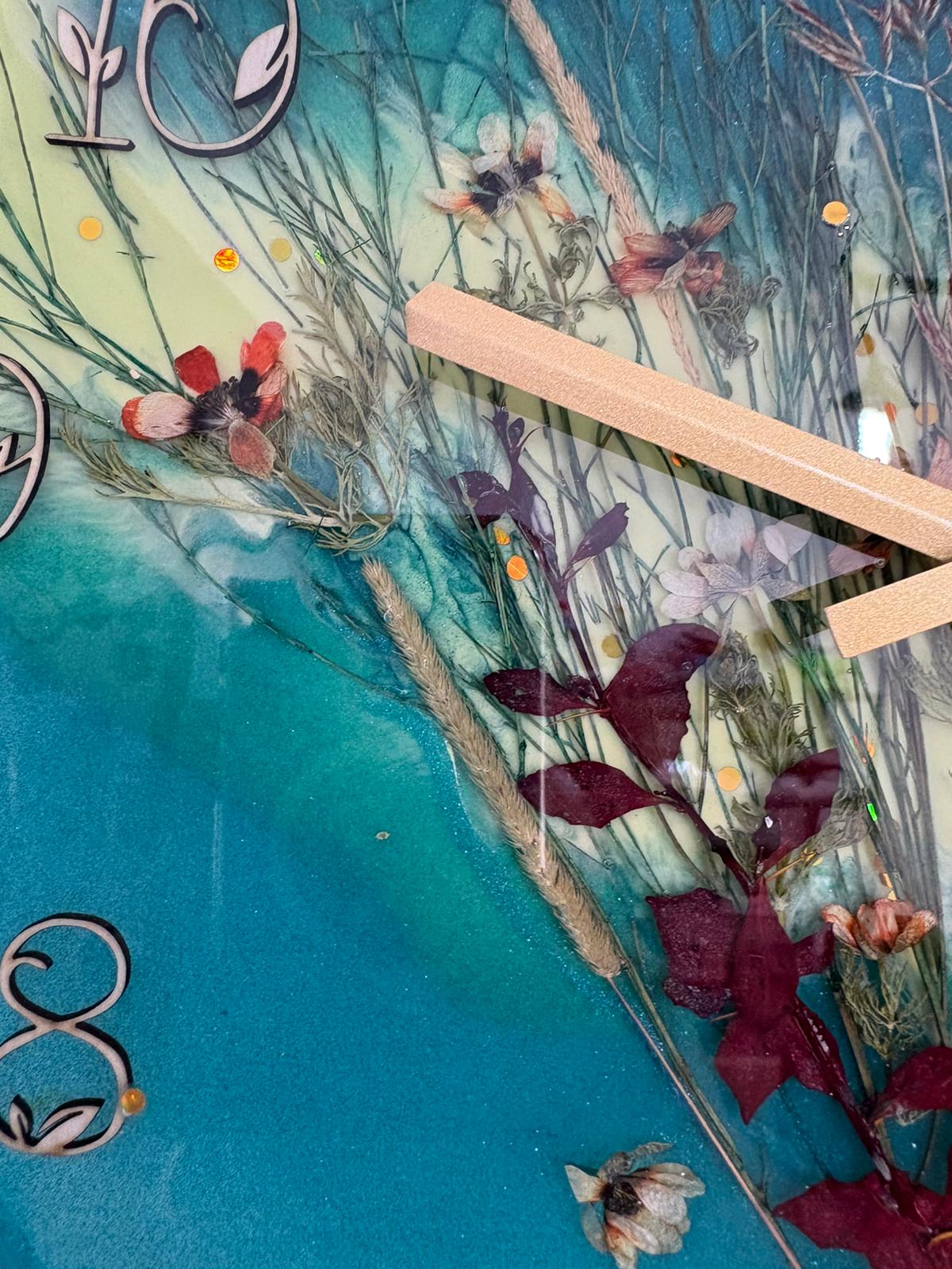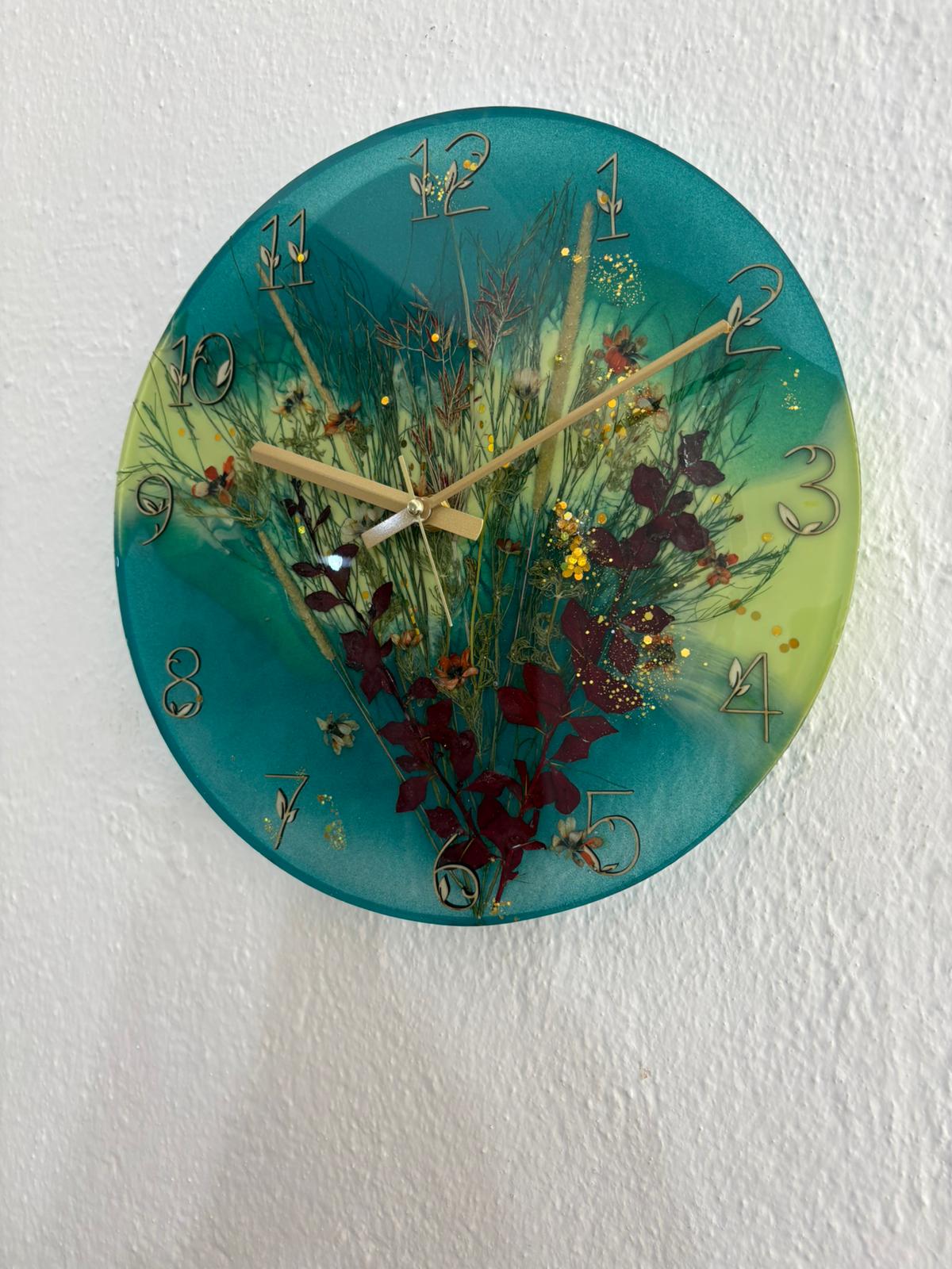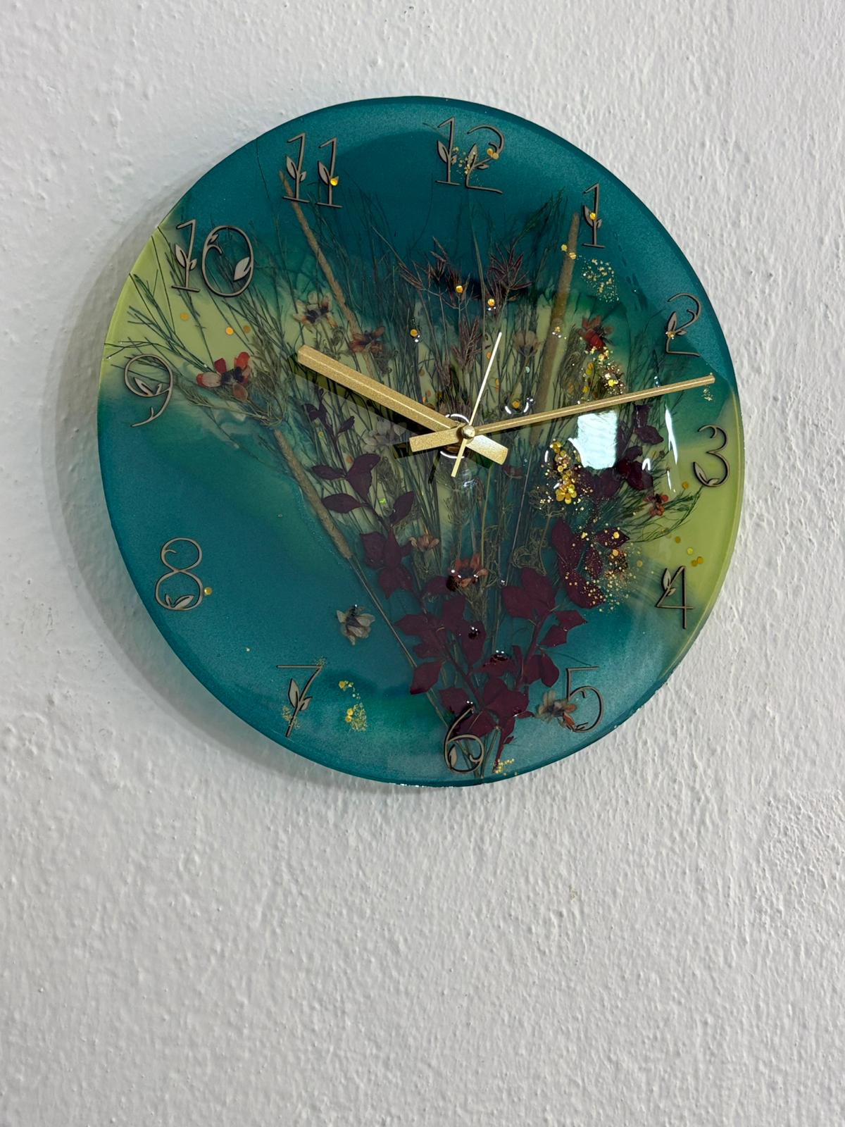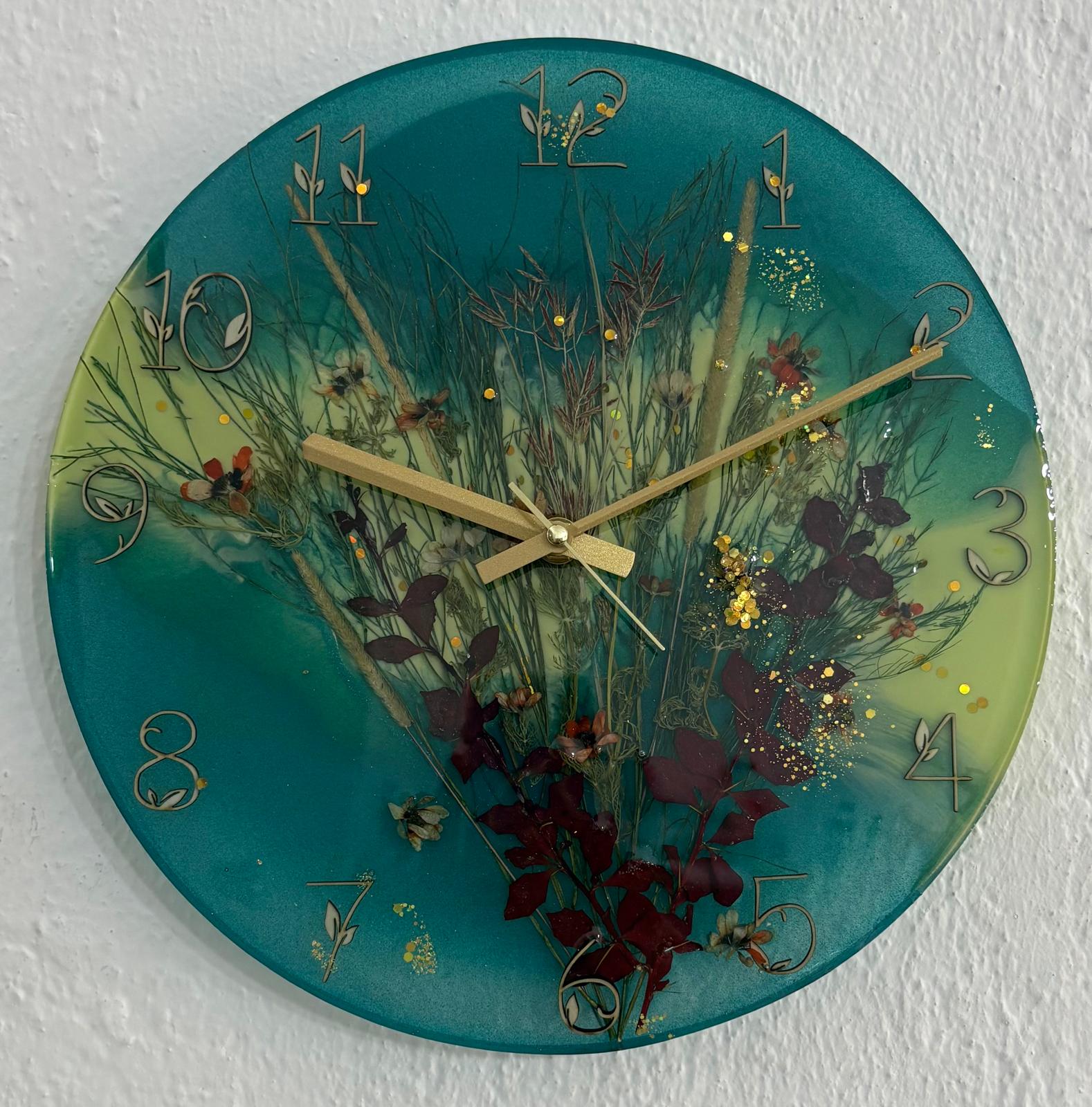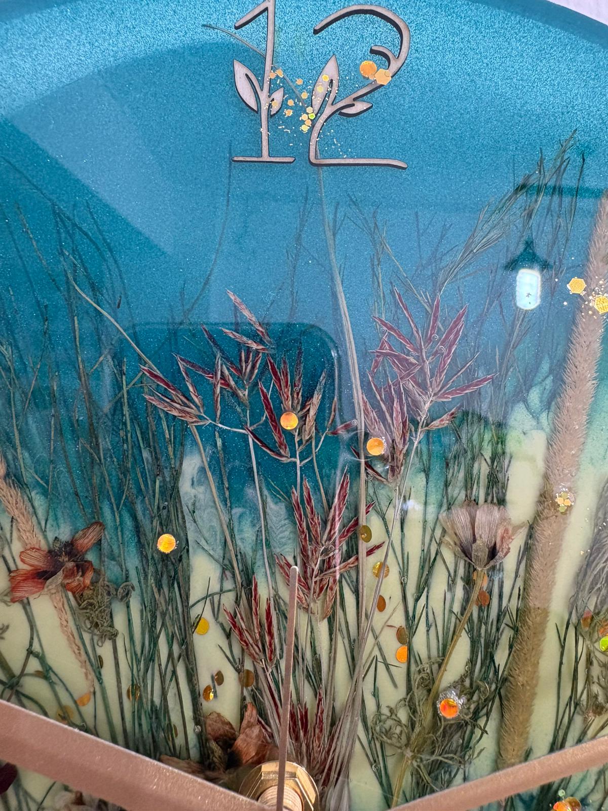 PELİNCE - Gelincik ve Doğal Çiçek Buketi Epoksi Duvar Saati (Özel Tasarım - Tek Üretim) - 30 cm