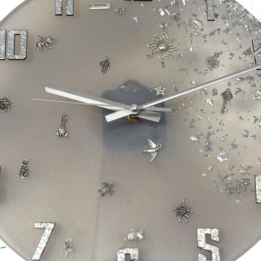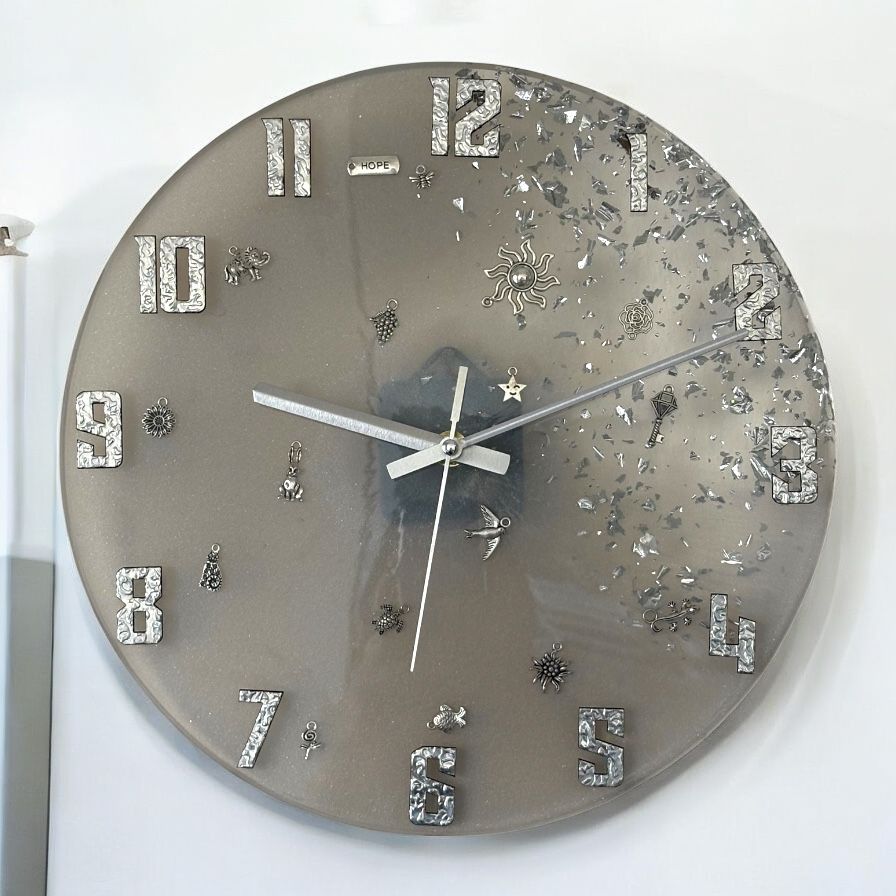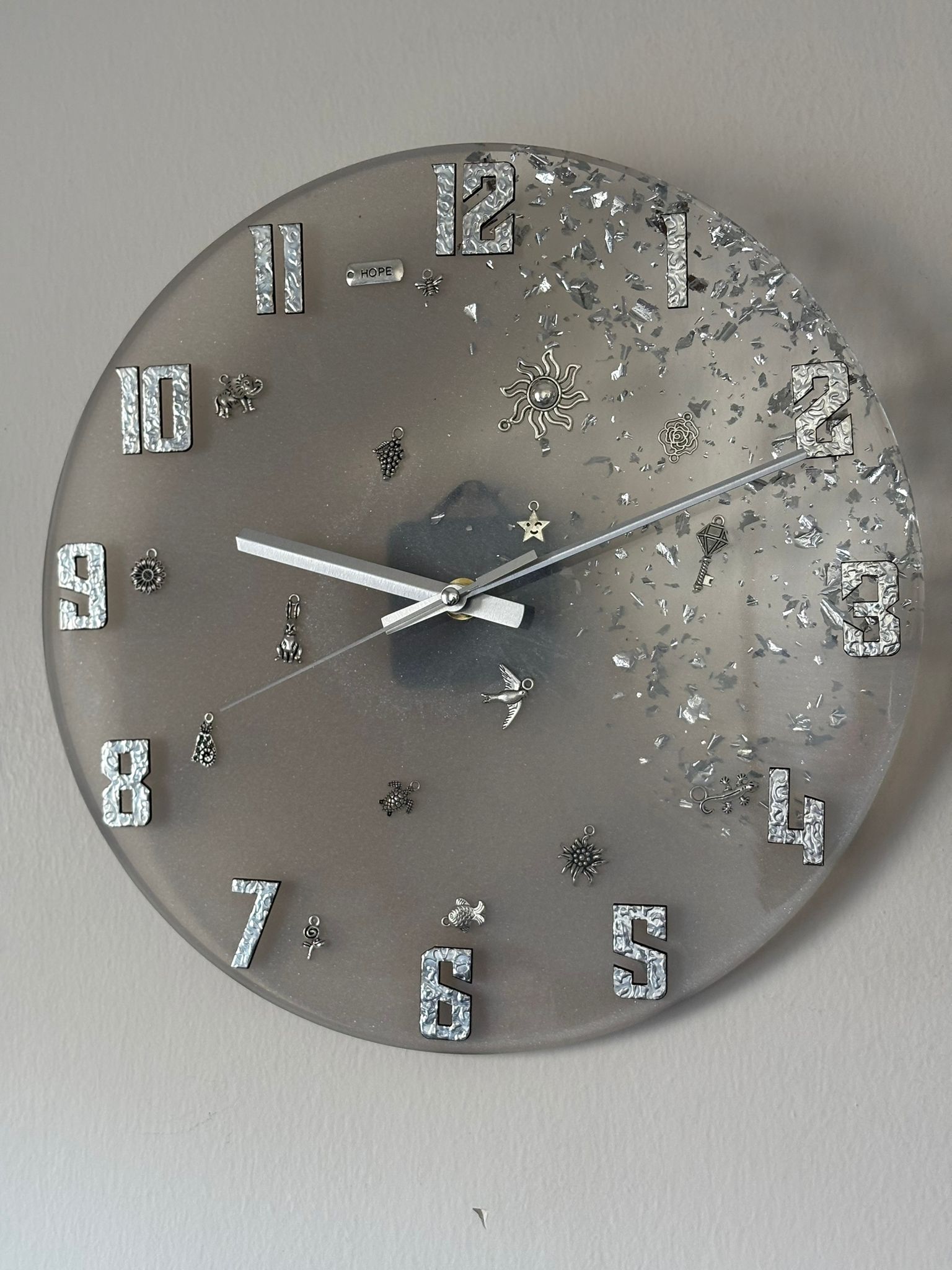 PELİNCE - Gri Zeminli Metal Motifli Epoksi Duvar Saati - 30 cm