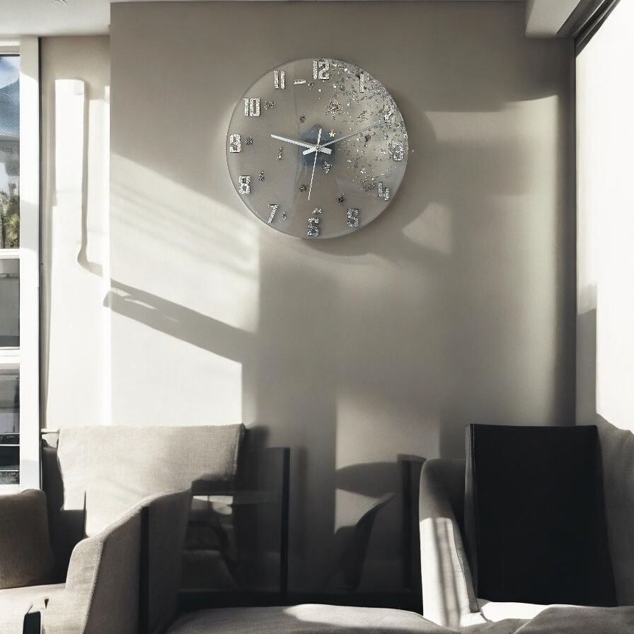 PELİNCE - Gri Zeminli Metal Motifli Duvar Saati - 30 cm