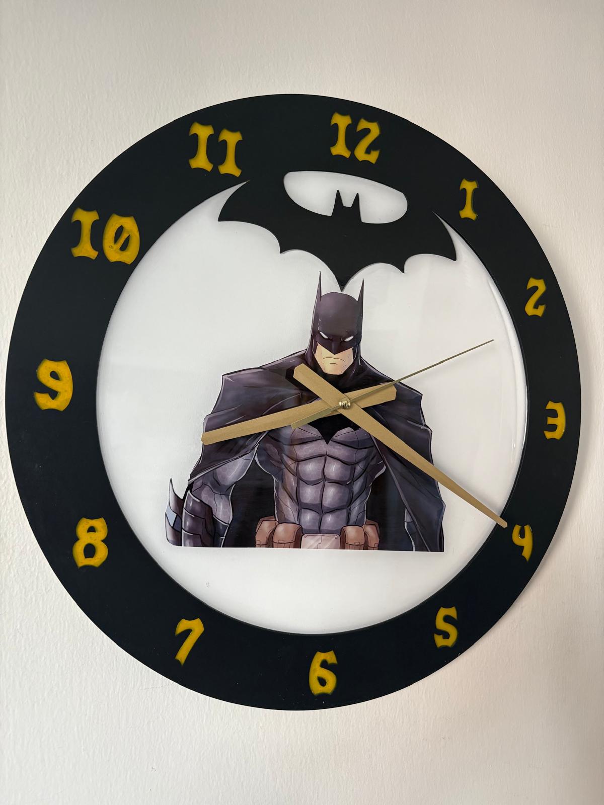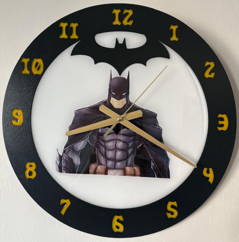 Gotham?ın suçla dolu sokaklarını temizleyemeyiz belki ama çocuk odalarındaki duvarları Batman?le süsleyebiliriz! Ahşap kontraplak zemin üzerine hazırlanan bu özel tasarımda, rakamlar sarı renk epoksiyle dolduruldu, Batman figürü ve dev yarasa logosu şeffaf epoksiyle kaplanarak hem korundu hem de cam gibi bir görünüm kazandı.