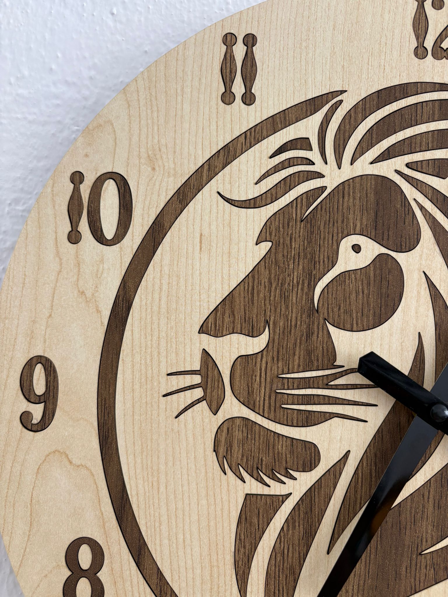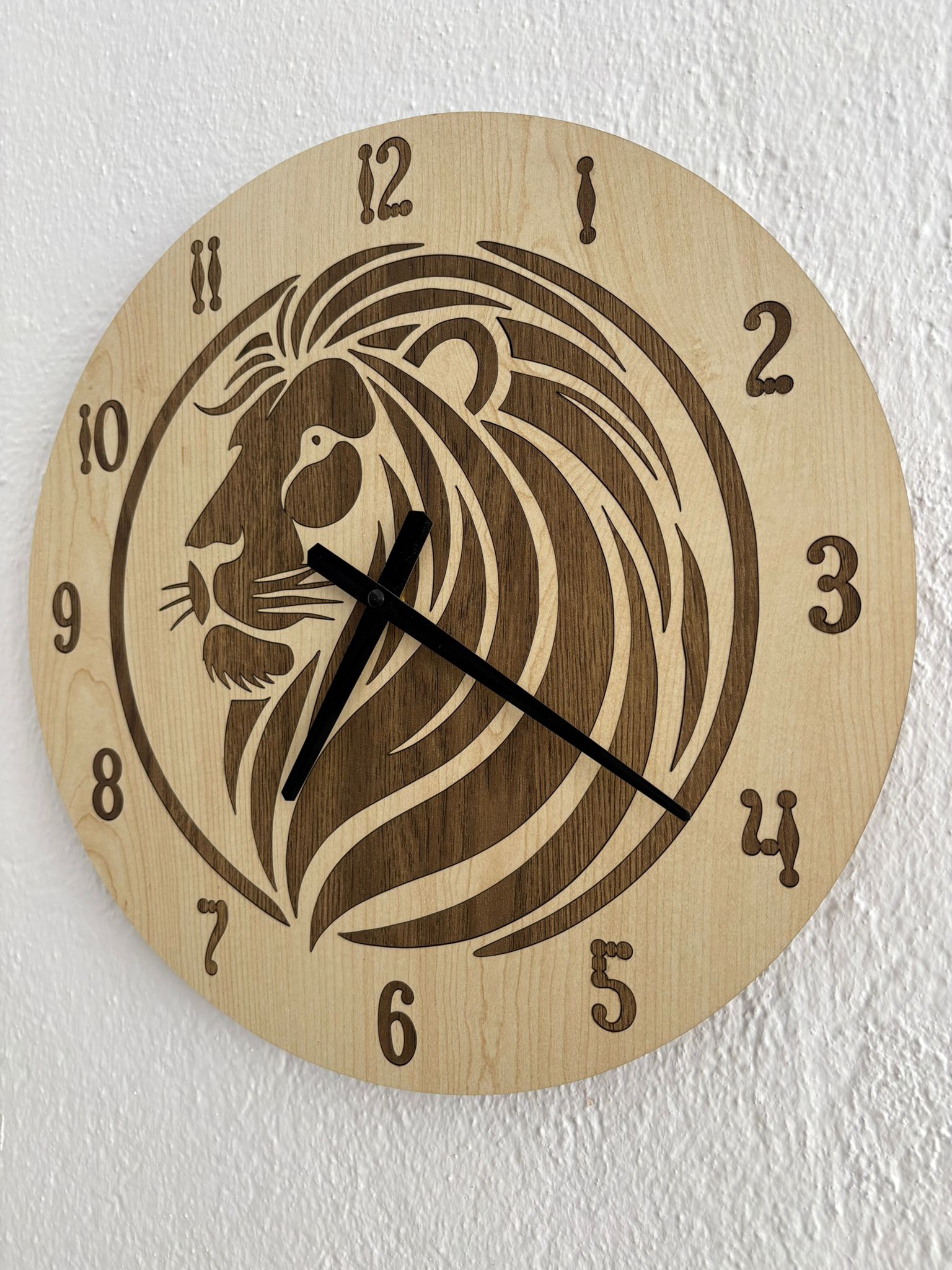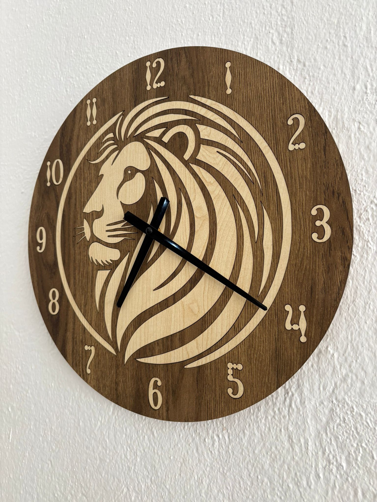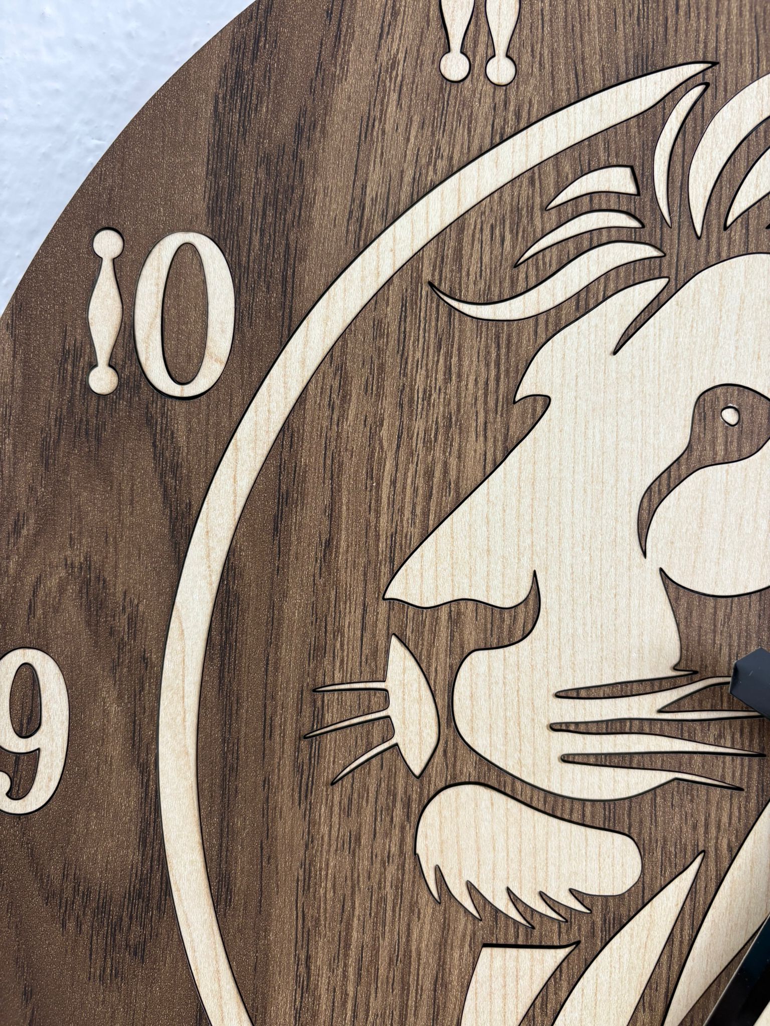 PELİNCE - Safari Serisi Aslan Ahşap Duvar Saati - 40 cm