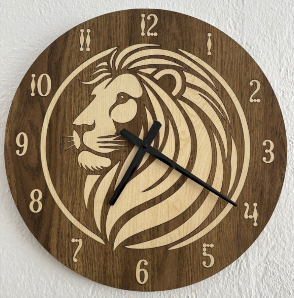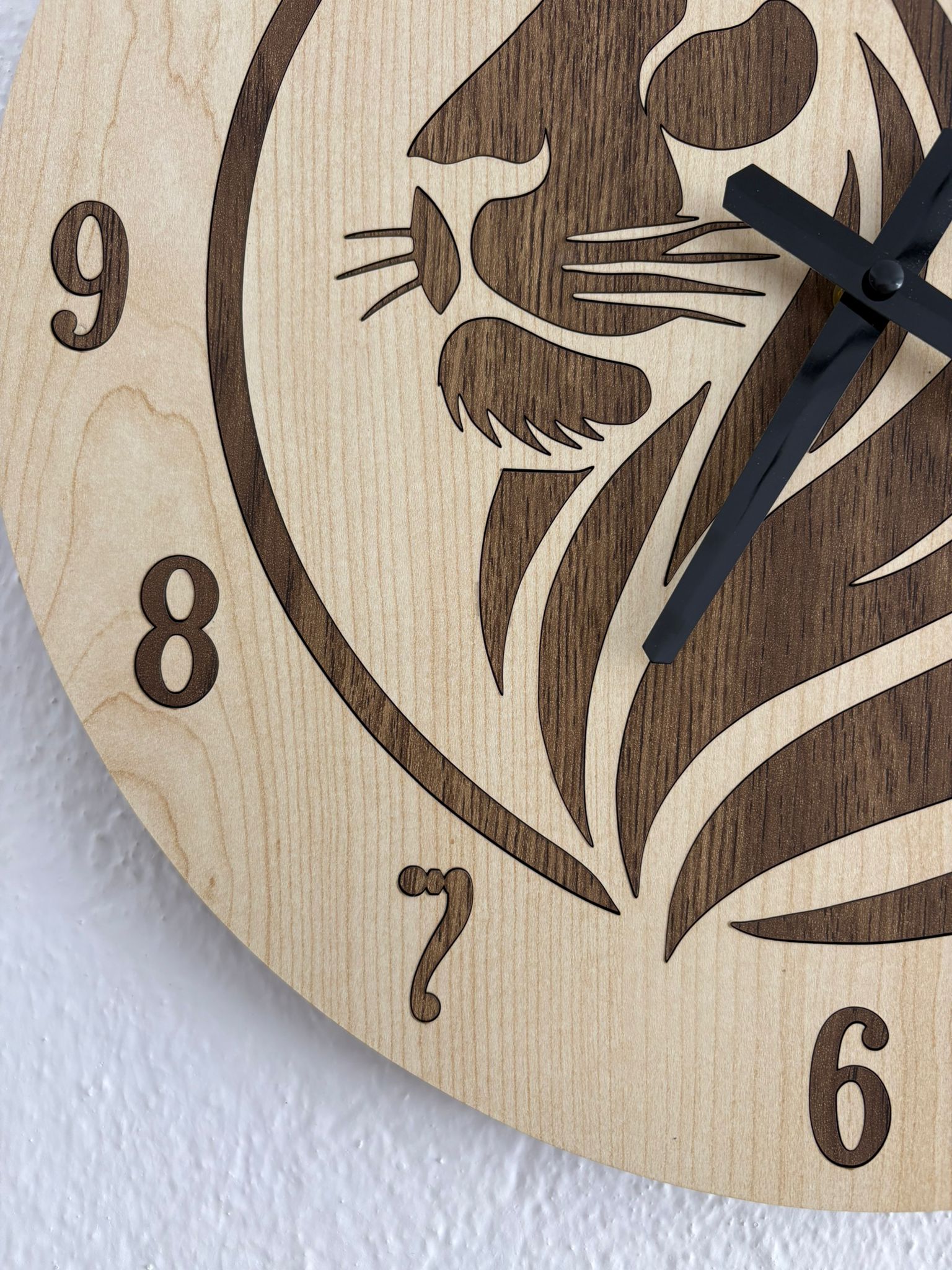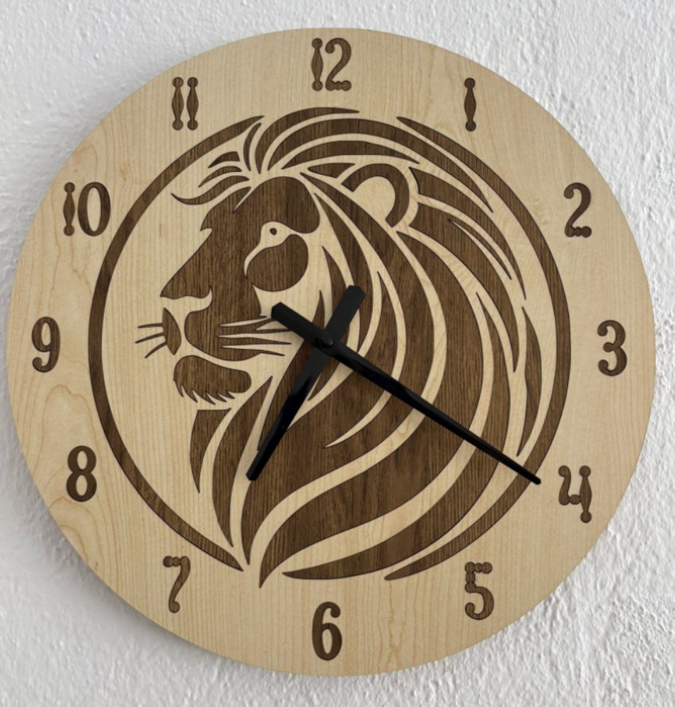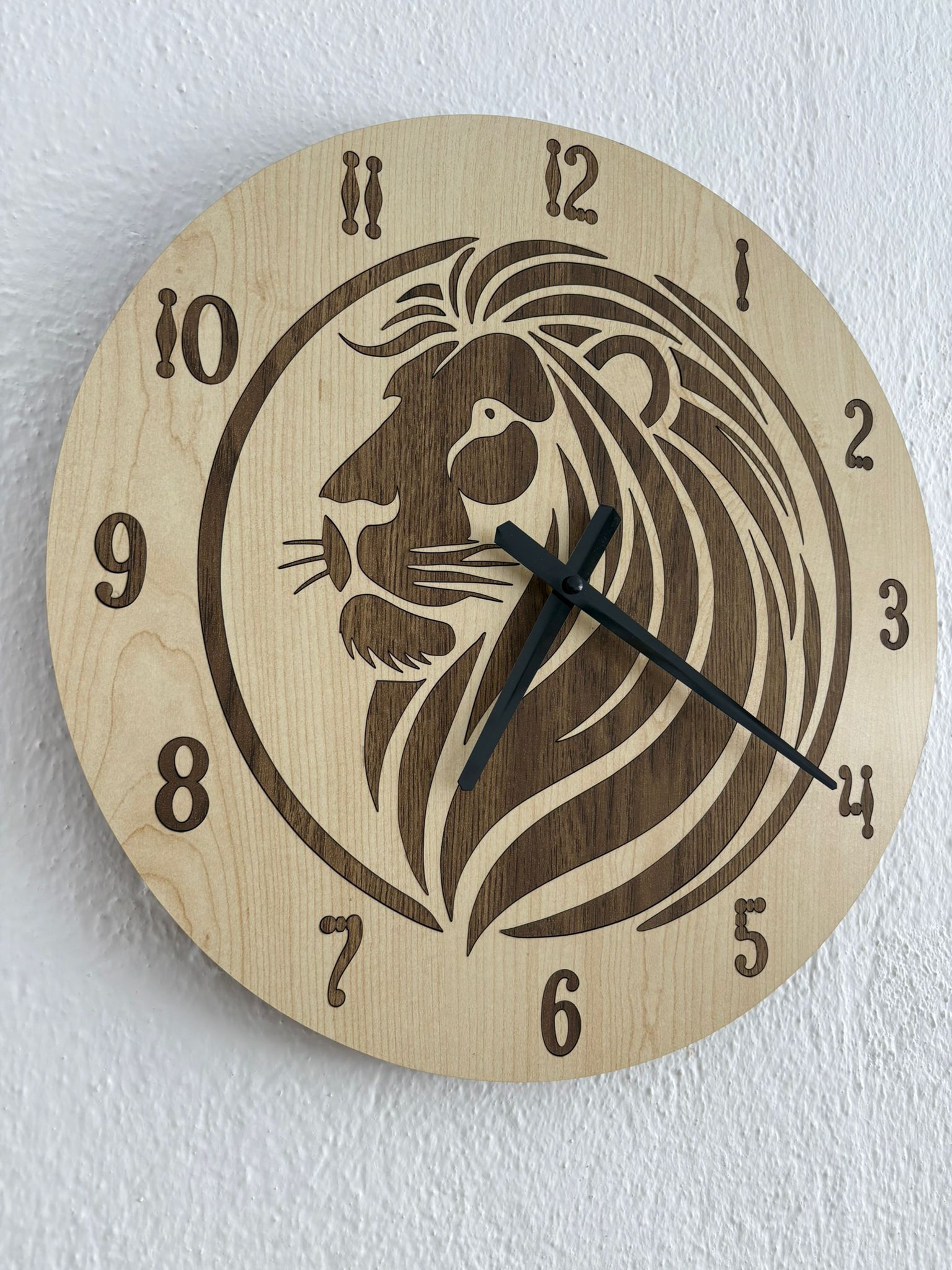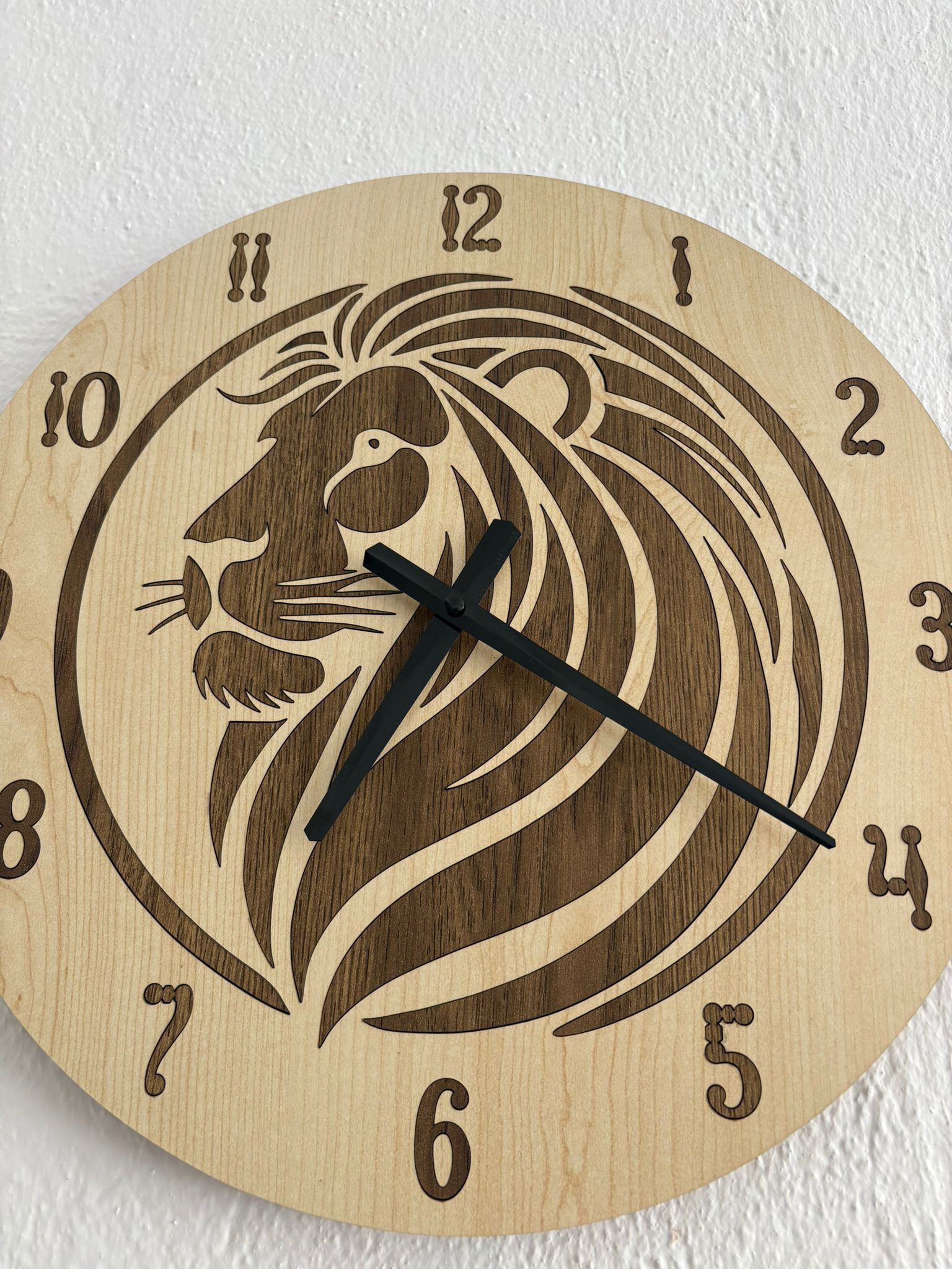 PELİNCE - Safari Serisi Aslan Ahşap Duvar Saati - 40 cm