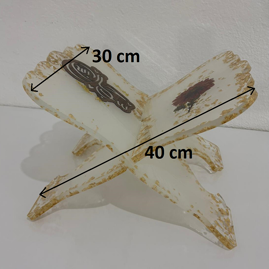 İçindeki çiçek normalde çoktan solup kaybolacaktı, epoksinin içinde ikinci hayatını buldu. Yani rahle sadece kitabı değil, çiçeklerin “ölümsüzleşmiş hâlini” de taşıyor.